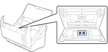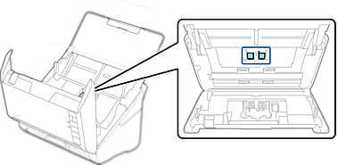 After using the scanner for a while, paper and room dust on the roller or the glass part inside the scanner may cause paper feed or scanned image quality problems. Clean the inside of the scanner every 5,000 scans.