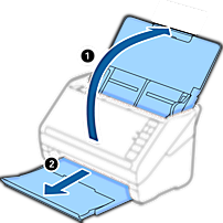Support the long paper at the input side so that it does not drop out of the ADF, and the output side so that the ejected paper does not fall from the output tray.