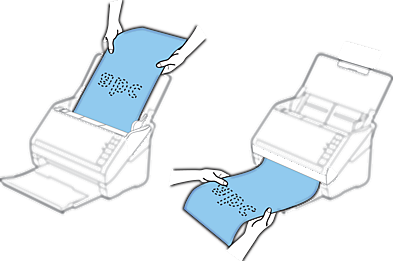 Adjust the edge guides to fit the edge of the long paper making sure there are no gaps between the edge of the paper and the edge guides. Otherwise, the originals may be fed skewed.