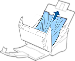 If you cannot pull originals straight up, carefully pull out any jammed originals from the output tray in the direction of the arrow.