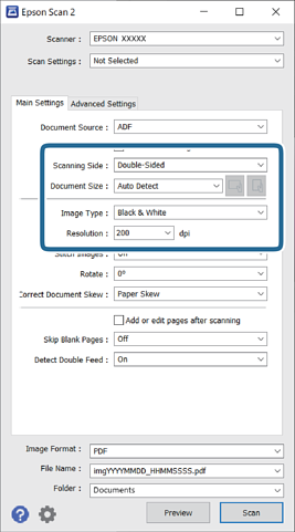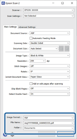 Detect Double Feed: Select to display a warning when multiple originals are fed at the same time.