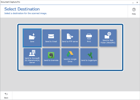 Selecione o destino dos dados digitalizados na janela Selecionar destino.