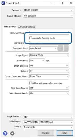Defina outras configurações para digitalizar na janela principal Epson Scan 2.
