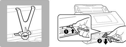 Para desinstalar a Paper Alignment Plate, enquanto empurra o gancho na parte inferior da placa (), puxe a placa pela parte inferior ().