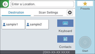 Pode verificar o destino antes da digitalização. Selecione Definições > Definições do Scanner, e a seguir ative Confirmar destinatário.