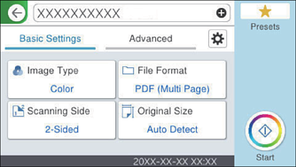 Selecione Nuvem no ecrã inicial no painel de controlo do scanner.