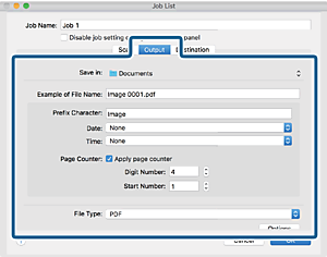 Os itens de configuração de destino são exibidos de acordo com o destino selecionado. Efetue as definições detalhadas se necessário. Clique no ícone ? (Ajuda) para obter detalhes sobre cada item.