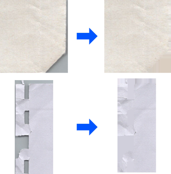 Pode corrigir imagens digitalizadas quando os cantos ou margens do original estiverem dobrados ou rasgados, ou quando aparecer uma sombra em redor da imagem digitalizada. Os cantos ou margens em falta na imagem digitalizada serão preenchidos com a cor do documento original.