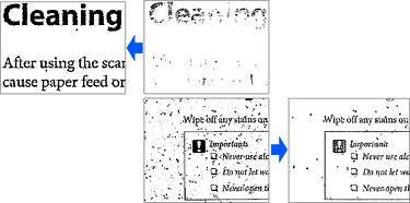 Pode digitalizar de forma nítida texto de difícil leitura devido a manchas de fundo e outros fatores. Pode realçar o texto e remover padrões pontilhados no fundo do original conforme o original.
