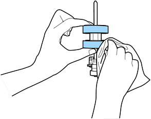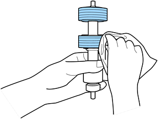 Use apenas o kit de limpeza Epson genuíno ou um pano macio e húmido para limpar o rolo. Se usar um pano seco, pode danificar a superfície do rolo.