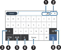 Muda o tipo de caracteres. Pode introduzir caracteres alfanuméricos e especiais tais como umlauts e acentos. |