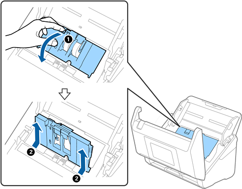Odprite pokrov pobiralnega valja in ga izvlecite iz optičnega bralnika.