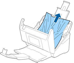 Če izvirnikov na morete povleči naravnost navzgor, previdno izvlecite morebitne zagozdene izvirnike z izhodnega pladnja v smeri puščice.