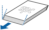 Poravnajte robove izvirnikov tako, da je natisnjena stran obrnjena navzdol, in nato vodilni rob potisnite v obliko klina.