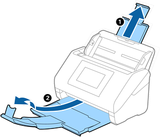 Razširite podaljšek vhodnega pladnja. Izvlecite izhodni pladenj, razširite podaljšek izhodnega pladnja in dvignite zaporo.