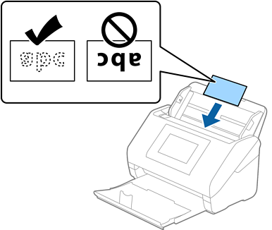 טען את כרטיסי הפלסטיק לתוך מגש הקלט כשפניהם כלפי מטה והקצה העליון פונה לתוך ה-ADF.
