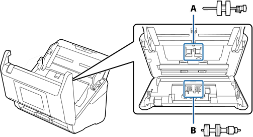 יש להחליף את ערכת מכלול הגלגלות (גלגלת האיסוף וגלגלת ההפרדה) כאשר מספר הסריקות עולה על מחזור החיים של הגלגלות. כאר מוצגת הודעת החלפה בלוח הבקרה במסך המחשב שלך‏,  פעל בהתאם לצעדים הבאים כדי לבצע את ההחלפה.
