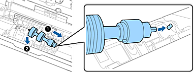 5. משוך כלפי מטה את האביזר של ציר הגליל‏,  ואז החלק והסר את גלילי האיסוף המותקנים.