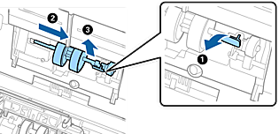 9. הרם את צידו השמאלי של גליל ההפרדה ואז החלק והסר את גלילי ההפרדה המותקנים.
