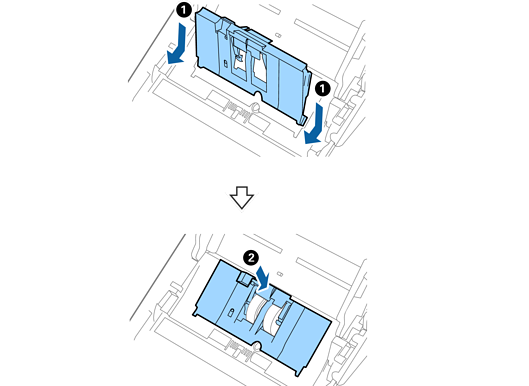 7. הנח את כסה מכסה גליל האיסוף בתוך החריץ והחלק אותו. סקור את המכסה היטב.