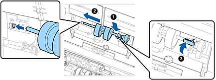 6. תוך שאתה מחזיק את האביזר‏,  החלק את גליל האיסוף החדשה שמאלה והכנס אותו לתוך החור בסורק. לחץ על האביזר כדי לקבע אותו במקומו.