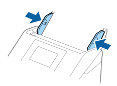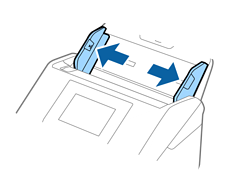 החלק את מדריכי הקצה כך שיתאימו לקצה ה-ניילונית סריקה ודאג לכך שלא יהיו מרווחים בין ניילונית סריקה לבין מדריכי הקצה. אחרת, עלול הגיליון הנושא להיכנס עקום.