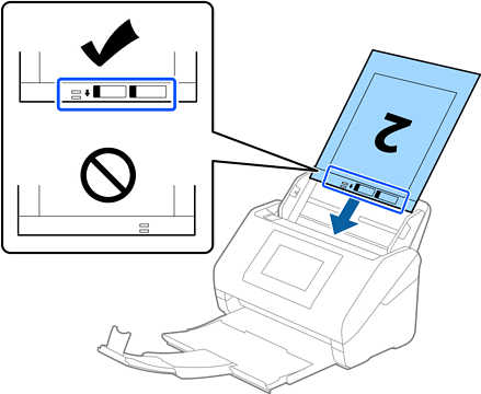 ודא שהצד עם הוראות השימוש פונה כלפי מעלה. החלק את ה-ניילונית סריקה לתוך ה-ADF עד שהוא ייתקל בהתנגדות.