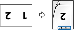 בחר דו-צדדית מתוך צד לסריקה ובחר שמאל וימין מתוך תמונות מחוברות בחלון Epson Scan 2. לפרטים, עיין בעזרה של Epson Scan 2.