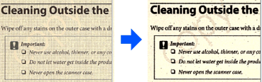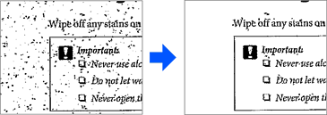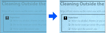 תוכל לסרוק בבהירות טקסט שקשה לקרוא כתוצאה מרקעים וגורמים אחרים. תוכל להדגיש טקסט ולהסיר תבניות מנוקדות ברקע של מסמך המקור בהתאם למסמך המקור.