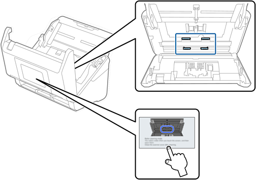 אחרי שמשתמשים בסורק זמן מה, ייתכן שאבק מהנייר ומהחדר יצטברו על הגליל או על חלק הזכוכית שבתוך הסורק וייגרמו לבעיות בהזנת הנייר או באיכות התמונות הסרוקות. נקה את פנים הסורק כל 5, 000 סריקות.