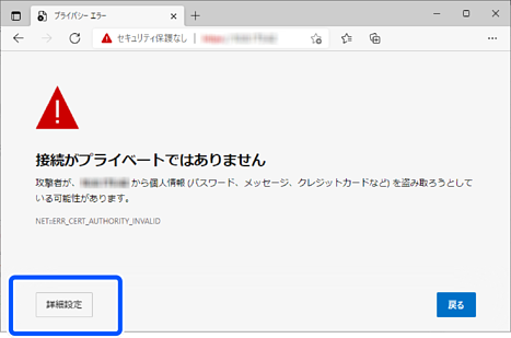 ブラウザー上に警告画面が表示されたときは、警告を無視してWebページ(Web Config)を表示してください。 HTTPSにアクセスするときにスキャナーは自己署名証明を使うため、Web Configを起動すると警告が表示されますが、これは問題ではなく、無視しても安全です。ブラウザーによっては、Webページを表示するために[詳細設定]をクリックする必要があります。