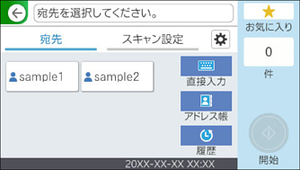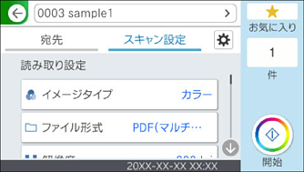 事前にスキャナーの[日付/時刻]と[時差]が正しく設定されていることを確認してください。操作パネルで[設定]-[基本設定]-[日付/時刻設定]の順に選択します。