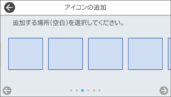 スキャナーの操作パネルで、[設定]-[ホーム画面編集]-[アイコンの追加]の順に選択します。
