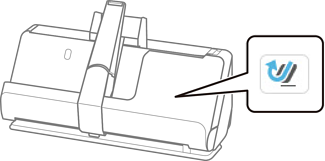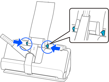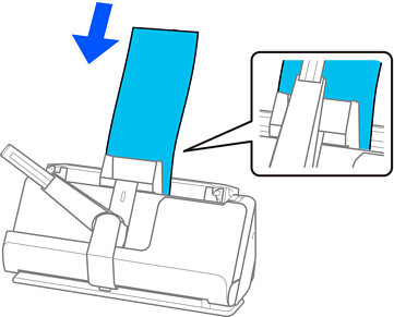 スキャナー本体の原稿ガイドを使用してセットします。レシート給紙ガイドの中にはセットできません(58 mm幅のレシートのみセット可能)。