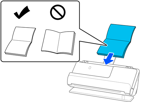 Розмістіть буклет стороною, яку потрібно сканувати, догори, а стороною з більшою кількістю сторінок — до пристрою АПД.