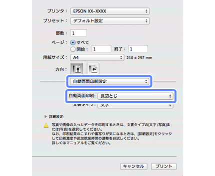 両面印刷に非対応の用紙は使用しないでください。表裏の印刷品質に差の出ないエプソン製両面上質普通紙のご使用をお勧めします。