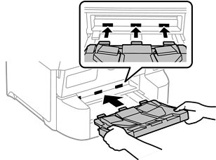 Εισαγάγετε μια ετικέτα που δείχνει το μέγεθος του χαρτιού προς τοποθέτηση στην κασέτα μέσα στην υποδοχή.