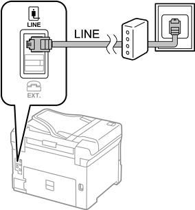 Συνδέστε ένα καλώδιο τηλεφώνου από το μόντεμ DSL ή από τον προσαρμογέα τερματικού θύρα ISDN στη θύρα LINE στο πίσω μέρος του εκτυπωτή. Ανατρέξτε στα εγχειρίδια που συνοδεύουν το μόντεμ ή τον προσαρμογέα για περισσότερες λεπτομέρειες.
