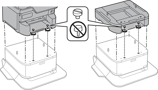 Εναποθέστε τον εκτυπωτή ή μια προαιρετική μονάδα κασέτας χαρτιού απαλά πάνω στην αρχειοθήκη στοιχίζοντας τις γωνίες και, στη συνέχεια, ασφαλίστε τον/την με τις βίδες.