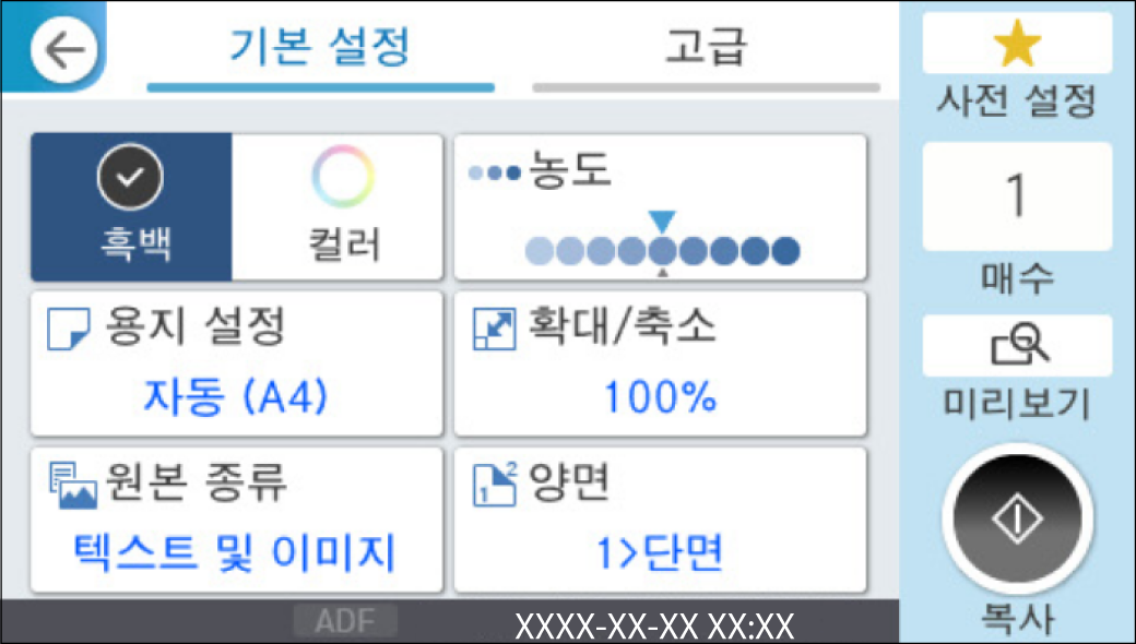 홈 화면에서 복사를 선택합니다.