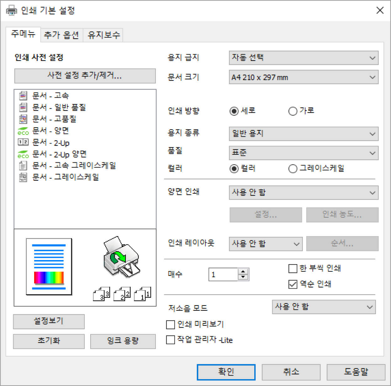 자세한 내용은 프린터 드라이버의 메뉴 옵션을 참조하십시오.