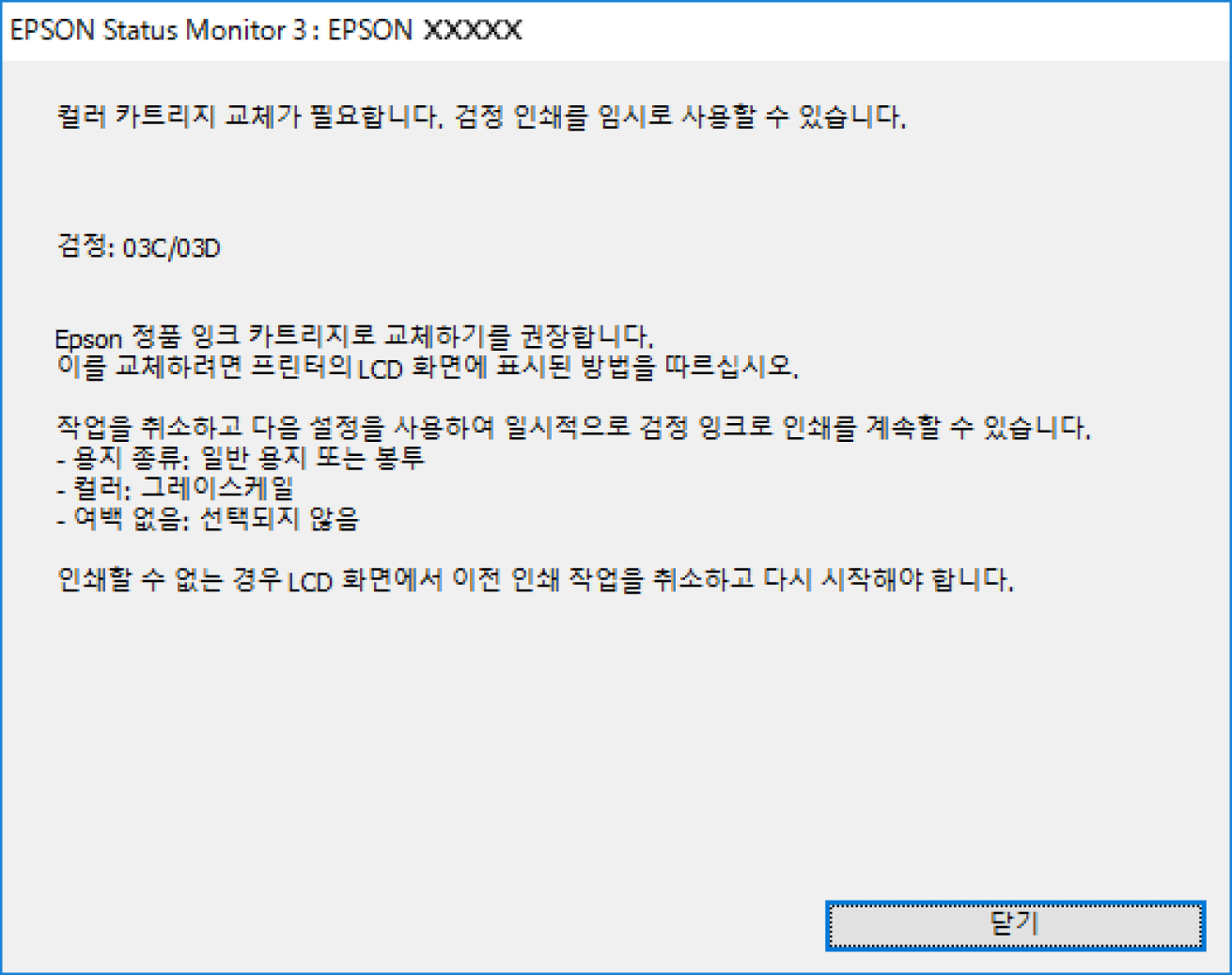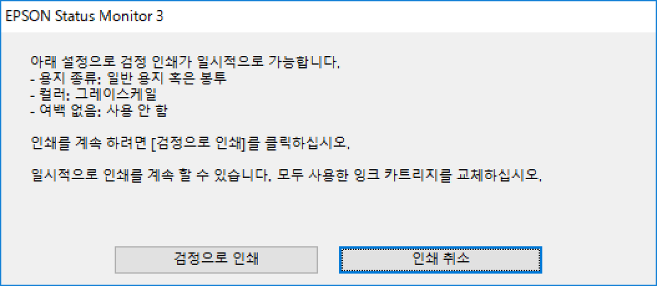 다음과 같은 창이 표시되면 검정으로 인쇄를 선택합니다.