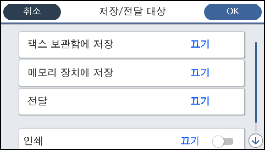 수신한 팩스를 동시에 인쇄하려면 인쇄를 눌러서 켜기로 설정합니다.