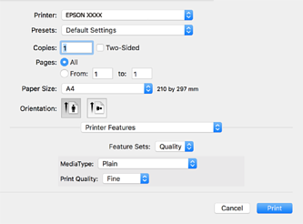 Selectați Funcții tipărire din meniul pop-up.