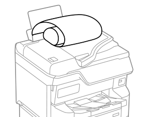 Încărcați hârtie de format lung în tava de hârtie, permițând marginii frontale a rolei de hârtie să cadă. Setați Detectare automată Dim hârtie la Dez. și apoi selectați Personalizată drept setare pentru formatul de hârtie.