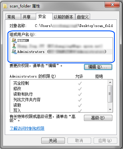 您可以在安全标签 > 组或用户名上检查哪些组或用户可以访问网络文件夹。