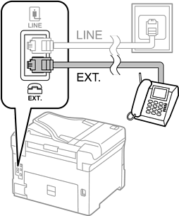 Ak zdieľate jednu telefónnu linku, dbajte na to, aby ste telefónne zariadenie pripojili k portu EXT. tlačiarne. Ak rozdelíte linku za účelom oddeleného pripojenia telefónneho zariadenia a tlačiarne, nebudú telefón a tlačiareň fungovať správne.