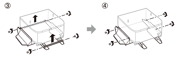 Pred premiestnením tlačiarne odinštalujte stojany skrinky. Urobte kroky uvedené v časti Príprava na presun tlačiarne a potom vykonajte kroky znázornené na nasledujúcich obrázkoch.