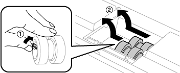 2個の新しい給紙ローラーを「カチッ」と音がするまで差し込みます。