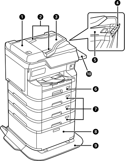 Гаргасан эхүүд ADF гаралтын тавцангаас унахаас сэргийлнэ. |